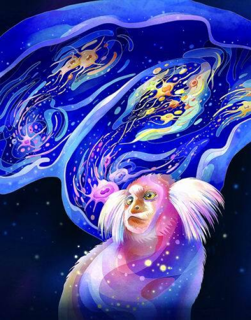 他们以普通狨猴为动物模型,发现大脑皮层里藏着两个方向相反的“分子梯度轴”。一个端点位于古老皮层,犹如城市里的“老城区”,处理情绪记忆;另一个端点位于初级感觉皮层,类似于“工业区”,处理感觉输入。“城市”从这两个端点向中间延伸,在交汇处形成“创新区”,也就是负责思考、决策、想象等高级认知的“联合皮层”。