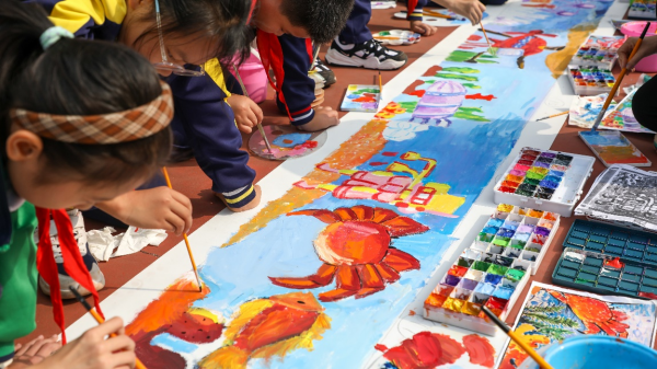 10月16日,凯发k8海洋研究所、青岛市教育局、青岛市科技局联合举办2024年青岛市中小学海洋节“我心目中的海洋”主题绘画活动,来自青岛各市区的120余名中小学生在百米长卷上现场作画,共绘心目中的蓝色海洋。