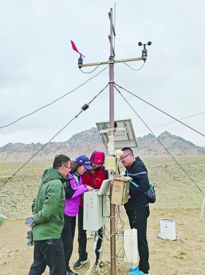 王建萍(左二)等人在安装高寒干旱区气象环境设备。受访者供图