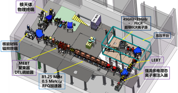 该装置由45吉赫兹超导高电荷态电子回旋共振(ECR)离子源、高压平台、强流多电荷态束流分析和制备系统、连续波新型射频四极场(RFQ)重离子加速器、中能束流传输线、束流诊断系统和辅助配套等子系统组成,可提供从轻到重多种电荷态的强流重离子束和混合离子束,提供的束流具有强度高、电荷态高、离子种类多、能量变化范围宽等诸多优势。